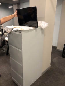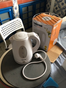 Um lote composto por um sistema de alarme, um ar-condicionado de parede da marca Midea, uma máquina de lavar roupa e uma de secar roupa, duas máquinas de café, sendo uma da marca Krups Dolce Gusto e outra da marca Delta Q, uma cafeteira elétrica da marca Tristar, um micro-ondas da marca Orima, um router, um aspirador industrial, um teclado da Apple, quatro monitores, quatro teclados, quatro ratos, seis CPU's, uma impressora da marca Brother, uma multifunções da marca Canon, um monitor, um teclado, três aparelhos de ar-condicionado portáteis, dois termoacumuladores